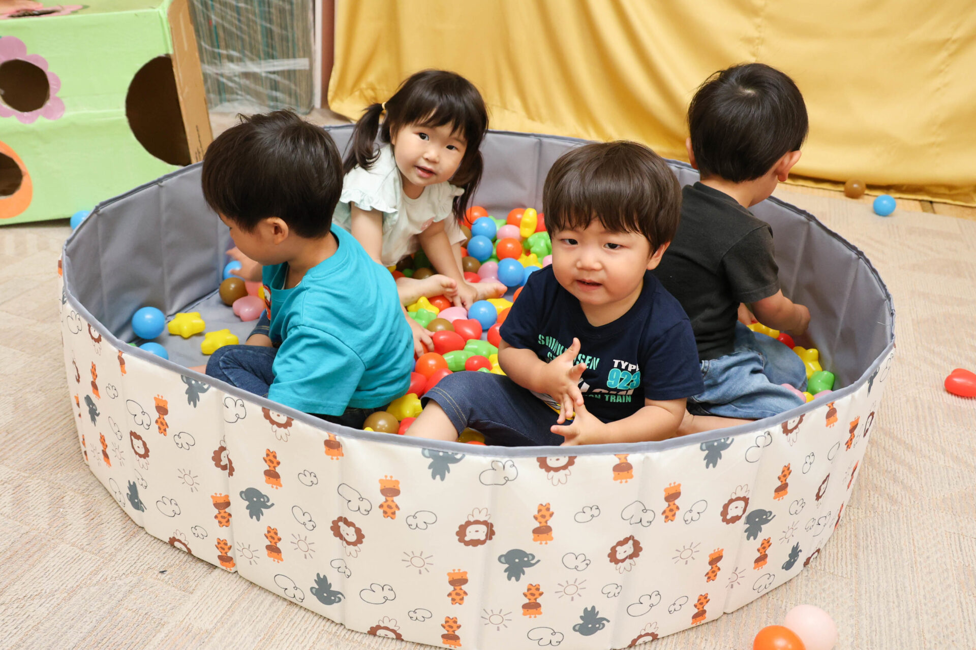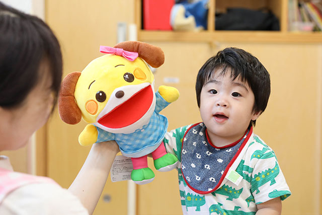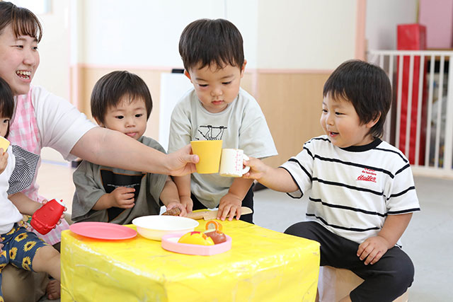 3号認定の子どもたちは、さんぽに出掛けたりおもちゃで遊んだりします。