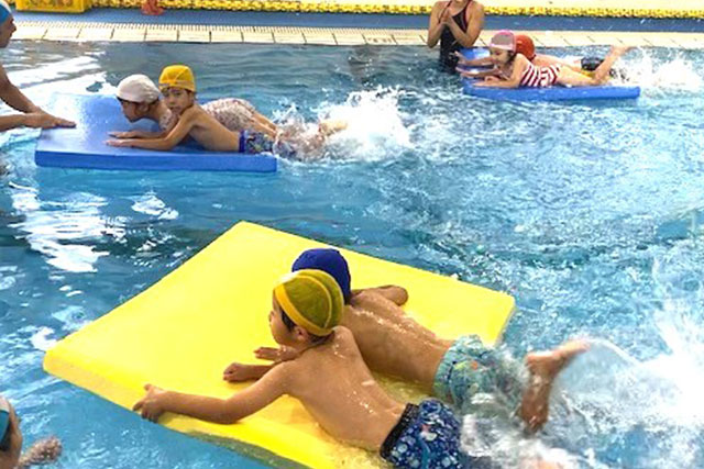 顔つけ練習からクロール・背泳ぎまでレベルごとのクラスに分かれレッスンを受けます。